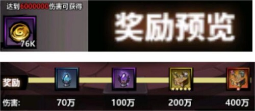 2、全部奖励和获得奖励需要造成的伤害量可以在奖励预览中查看。