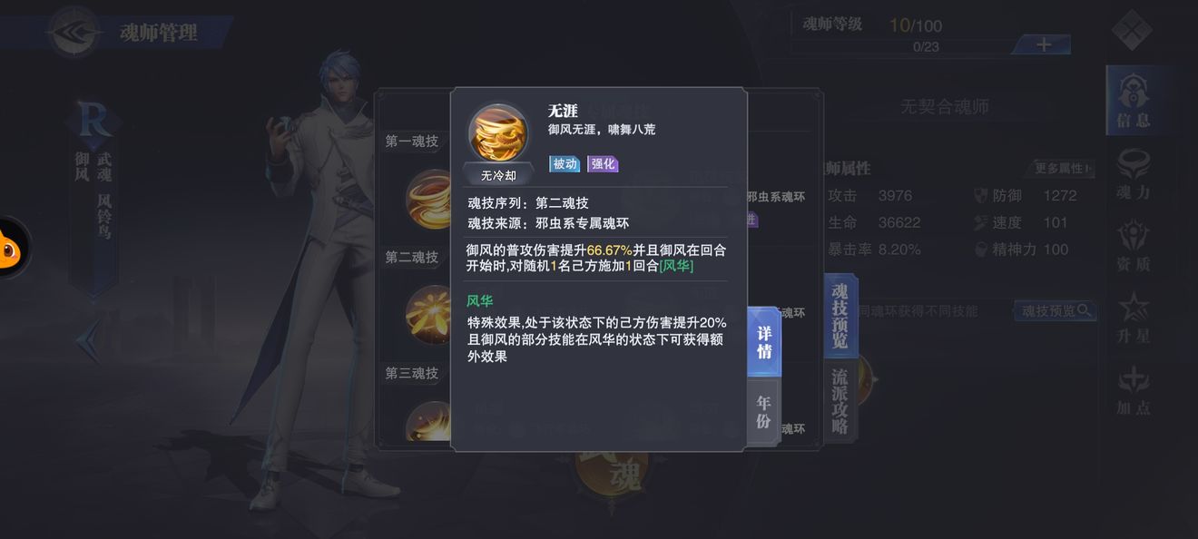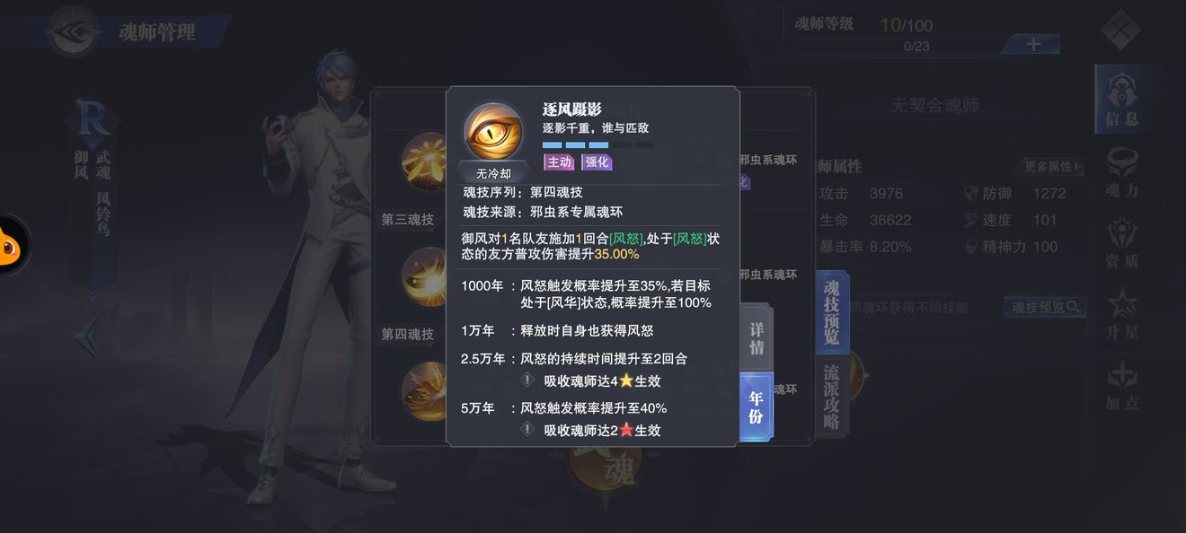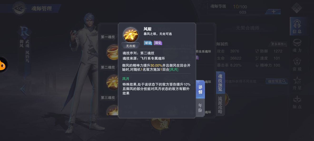 保证队伍的魂力充足,使御风第一魂技(邪虫)能够多次释放,打出多次行动条推进和立即行动效果。