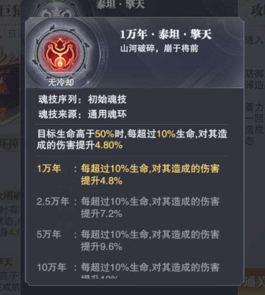 这两个魂环就是很明显的一个对比,蝶锋是触发是只要对方血量比例下降就提高伤害比较简单,擎天的触发条件还得是一个50生命以上,越高越疼,怎么说呢这东西。我之前给蝶锋的评价就是中肯偏下的,前期不建议携带,擎天这个魂环我给的评价甚至还要低于蝶锋,就现在PK环境来看,打的快的1-2回合就结束了,打的慢的比如铁王八给你带个擎天你也加速不了战斗的结束进程,打PK打悬赏,都不是一个很好的选择,唯一一个我能想到带擎天的就是一锤流的唐昊,直接第一回合拉满上限,别的阵容我暂时想不到,有一锤流唐昊的小伙伴可以去试试带擎天打第一回合的爆发,要是好用的话记得回来和我说一下,暂时我给的评价是中肯偏下的。