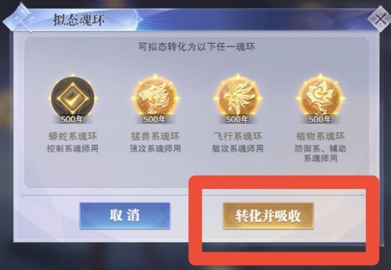 4、我们确定转换并吸收这样就完成了斗罗大陆魂师对决魂环的转换。