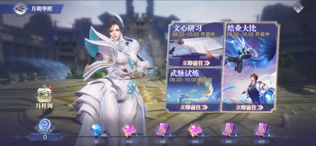 「月明华照」将分为<文心研习>、<武脉试炼>和<结业大比>三个活动玩法以及限时特惠商店<月桂阁·月韵宝华>。