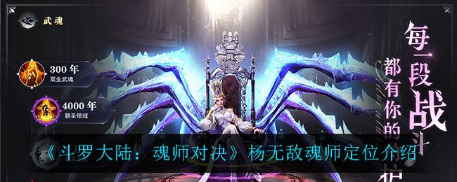 以上就是小编整理的关于《斗罗大陆:魂师对决》杨无敌魂师定位介绍的全部内容,更多游戏攻略请持续关注易采游戏网!