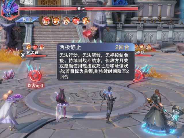 11级的伤害效果其实很一般,因为是对非首领敌人造成的伤害,所以......你真心想不到这个效果能够替代目前的主流打法或阵容12级增伤效果看似非常夸张,但如下图所示,在副本中由于boss级别的敌人只会受到2回合的【两极静止领域】,所以其增伤的持续性也是最大的问题所在13级的月关无消耗使用1技能,主要是为弥补在武魂融合技之间菊鬼都不能用技能的尴尬之处,但菊斗罗的1技能伤害......真心不敢恭维14级的先手限制效果还算是给部分大佬玩家的PVP作战提供了一定的思路,并且对于目前大行其道的一速流有一定的克制作用,但如果你不是大佬玩家这个效果跟你也没啥关系,毕竟氪满这次的转盘也是要小几千块钱的,所以绝大部分的普通玩家也就别想了
