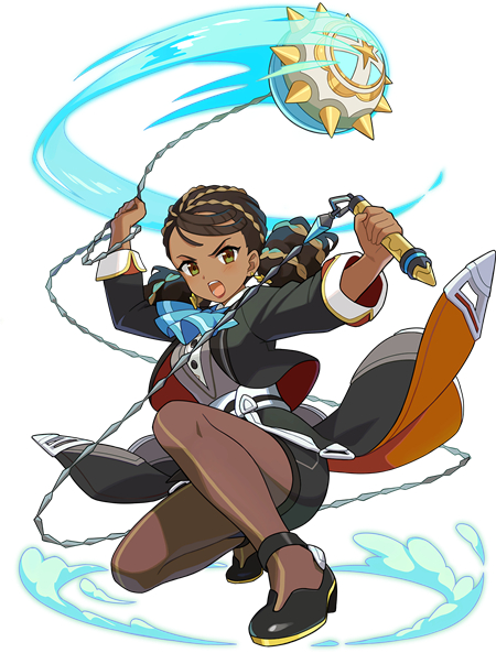 必杀技 以铁球重击地面对自身前方敌人造成水伤害+水属性耐性DOWN效果/追加冲击波会对周围敌人造成水伤害最大攻击段数2,最大倍率22.5/水属性耐性DOWN25%持续20秒,技能槽:450能量