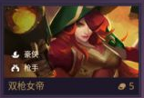 双枪女帝就是厄运小姐,大部分追求前期三星的豪侠枪手阵容,都等不到高本来搜厄运小姐,她一般是在中慢速的枪手阵容里。只要厄运小姐大招不放歪,团战就很容易获胜。由于厄运小姐太强了,金铲铲里削弱了一星和两星的伤害。