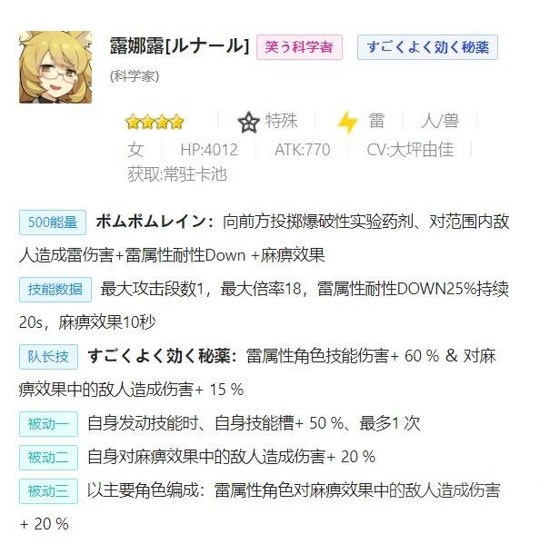 雷队常用,也可以跨属作为麻痹手出场,但是技能判定脑溢血导致扣分。