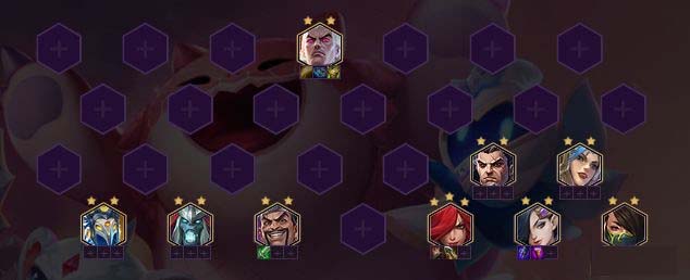 这套阵容的核心是不祥之刃,前期我们可以选择空城开局,然后在打完第一波野怪之后开始上棋子,前期搜到3星不祥之刃即可锁血,通过不断地调换站位来使我们的不祥之刃尽量往人多的地方跳,之后慢慢拉人口来找到帝国中的五费卡凤黯来凑齐4帝国,凤黯本身就是一张非常强力的单卡,再加上4帝国的伤害加成,可以说是非常强劲。此时依靠着前期的空城和中期的连胜来上到9级上5费强力卡。