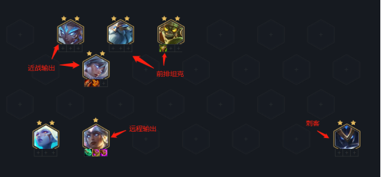所以当你摆放后排棋子时,要尽量保证避开刺客保证输出。如果有遇到潜行者站位是全在一排这种情况时,我们也可以把后排输出棋子放在前排,以此来避开敌方潜行者切我方的输出。