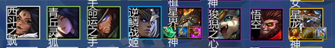 西斗之飒、青丘灵狐、逆鳞战姬、星界龙神、命运之手、孙悟空、星龙战神、狻猊之心