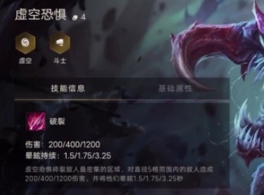 此外,羁绊的虚空能够提高他的真实伤害,斗士的话,能够有有效增加其血量增强肉度,一般来说虚空恐惧的第一次技能 ,均能造成高伤害。