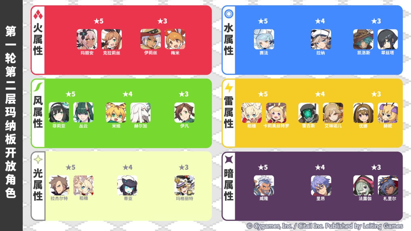 本次开放「第二层玛纳板」的角色列表如下: