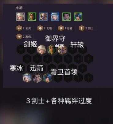 霜卫首领卡位焰魂防止潜行者切入,冰川骑士吃护卫羁绊增加坦度稳定丢 ,北地之盾不屈之枪站位完美C位都能吃到护卫羁绊。
