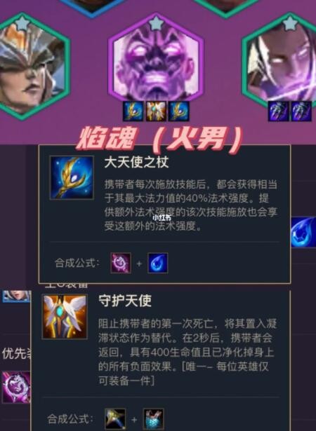 前期优先拿无用大棒和护甲合成钢铁烈焰之匣~过渡非常好用。大天使之杖和珠光护手也可以直接合给狐理韦鲁斯后期给焰魂。焰魂才是阵容大C。