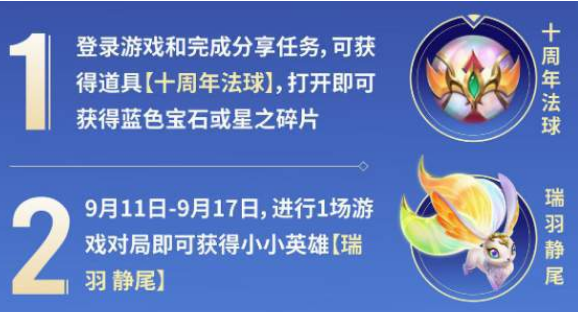 开启十周年法球可以获得蓝色碎片、星之碎片。用于解锁游戏内的各种道具,星之碎片可以升级小小英雄,让小小英雄拥有更加炫酷的动作和外观。