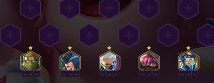 2-5上5人口,组成3潜行2骑士,如果没有看情况自由搭配。(前期随便什么2星棋子都有很高的战斗力)灵活运用。