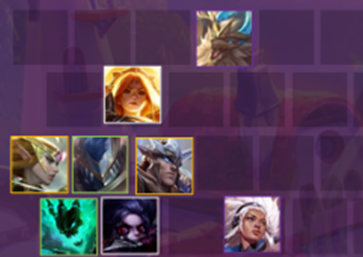 棋子组成:蕾欧娜、波比、诺提勒斯、锤石、芮尔、加里奥、盖伦、凯尔