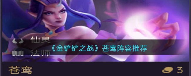 《金铲铲之战》游戏中苍鸾阵容推荐:仙灵女巫(璐璐)、命运之手(卡牌)、青丘灵狐(狐狸)、邪恶小法师、轩辕、苍鸾、狻猊之心。今天小编给大家带来了《金铲铲之战》苍鸾阵容推荐,感兴趣的小伙伴一起来看看吧,希望可以帮助到大家。
