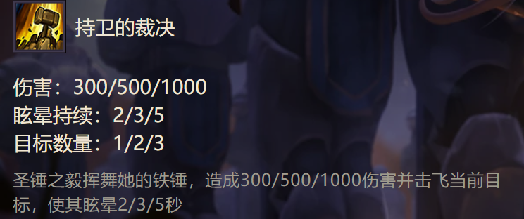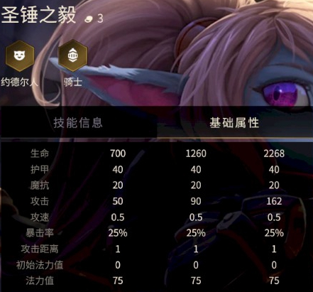 解析:圣锤之毅作为前排单位,具有一定的抗打能力,有着控制的坦克。