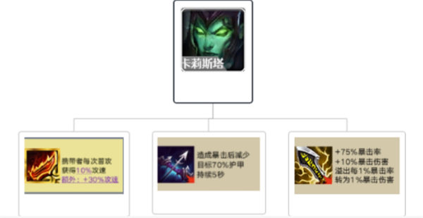 3、卡利斯塔需要羊刀(提升攻击速度)和穿甲弓,是比较吃装备的。