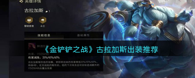 金铲铲之战古拉加斯是英雄联盟的酒桶,很多玩家想知道这个英雄装备是怎么出装的,下面手游网小编就给大家带来了《金铲铲之战》古拉加斯出装推荐介绍,感兴趣的小伙伴一起来看看吧,希望可以帮助到大家。