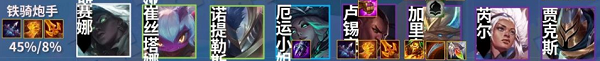 赛娜、崔丝塔娜、诺提勒斯、厄运小姐、卢锡安、加里奥、芮尔、贾克斯。