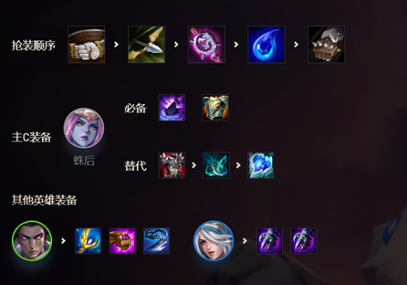 6人口蛛后、西斗之飒、未来守护者、迅箭、天罚神弩(没3换臻冰之箭)、皮城执法官