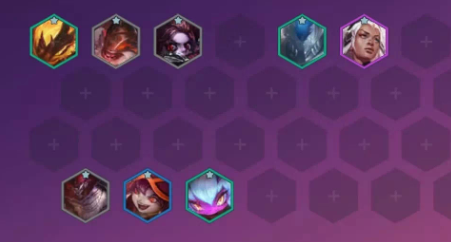 运营思路:由于是赌狗阵容,前期依旧以连败开局,不升人口,在3-1时我们应该花光经济找出3星克烈,然后在3阶段4阶段打出连胜保持血量与经济优势,如果找不出3星克烈我们容易在中期的时候暴毙,有小恶魔转职的话我们也可以优先追8小恶魔。 在5级时站位如图:
