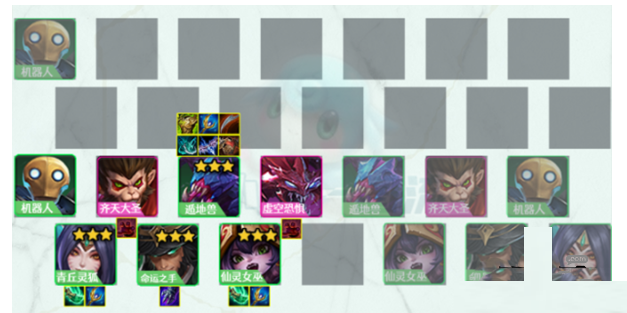 那就攒钱早点7级卡着利息搜,少10%概率,但更大概率能让齐天大圣(猴子)虚空恐惧(大虫子)这两张紫卡到2星,这两紫卡是你主队伍不出3还能混名次的必要条件,很多人6级追了一大堆2费,甚至还把机器人追进去,到快死了升个7,才刚好把4斗3法挂满,这套强就强在中期7级全二能猛入别人
