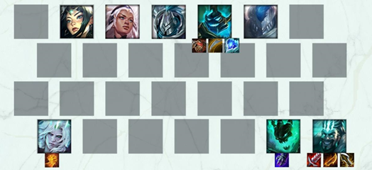 将防御装备给了人马(赫卡里姆),同时继续搜牌,提高阵容的深度,但是没有梭哈,因为通过对局发现对手的强度并不是特别高,自身血量保持的比较健康,不需要再搜牌提高阵容强度。