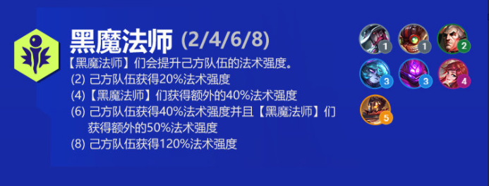 (6)己方队伍获得40%法术强度并且【黑魔法师】们获得额外的50%法术强度