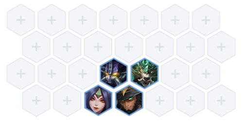 站位如图,可以中间沉底站位,也可以左侧贴墙站位,一个是可以防多数法师阵容,一个可以防刺客,看个人习惯来选择。这边需要注意卡牌的回蓝只有半径一格的范围,一定要把需要回蓝的单位,贴着卡牌放。