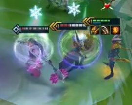 塔里克为他自身和生命值最低的友军治疗375/475/600生命值。任何过量治疗都会转化为一个持续4秒的护盾