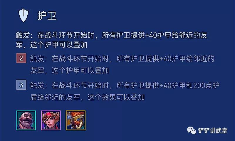 2)3护卫除加护甲以外还能提供可叠加的护盾值;