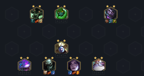 3阶段:3阶段属于炼金过渡的强势期,主靠沃里克或者克格莫双C打出连胜优势,所以该阶段必备棋子必有其一张,两张在场最好。