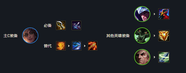 4、装备搭配:【莎弥拉】无尽之刃+最后的轻语;莎弥拉是这套阵容的核心输出点,无尽和轻语等装备让她在面对坦克阵容时也有很好的输出力,再配上挑战者提供的攻速,可以快速收割战场。