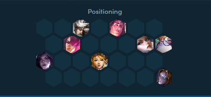 5、站位图:在站位上莎弥拉位于第二排伺机进入战场,前排都是挑战者和一些其他坦克们吸引火力,而奎因在最后一排,每次依靠技能的致盲效果为队伍提供BUFF辅助。