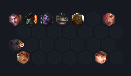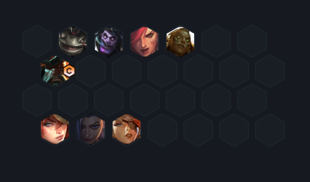 5、站位图:站位上让赏金猎人们都在前排分散吸收火力,而金克丝和奎因等英雄需要在后排提供持续火力。