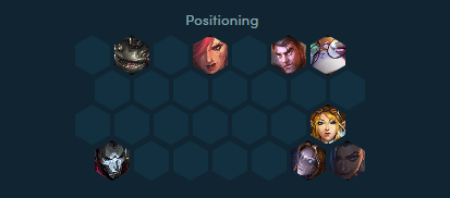 5、站位图:分散的站位方式,悠米保护杰斯给予一层护盾,风女保护后排的金克丝。