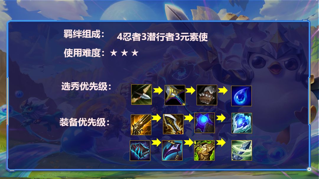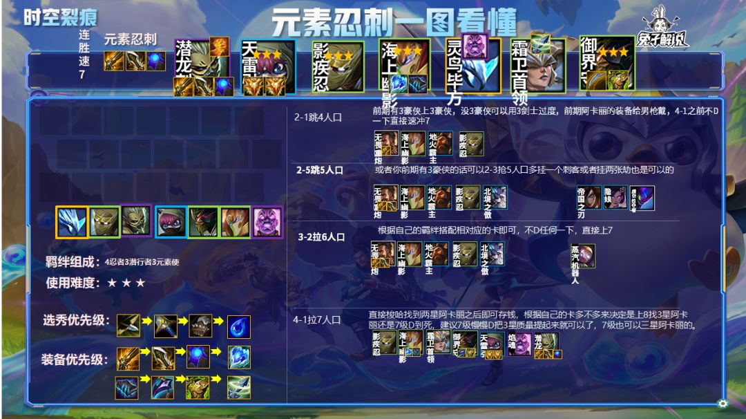 阵容组成:4忍者3潜行者3元素使