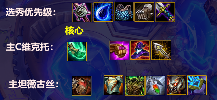 维克托装备主要就是青龙加上法强装,维克托基础伤害很高,能出一个技能基本上就清场了,这一点和拉克丝很不一样,大剑只需求一个,伤害够高一个技能也行所以也可以蓝BUFF,这样有有利于平滑过渡拉克丝和好捡装备,拉克丝装备比较完美也可以拉克丝主C维克托捡装备副C。