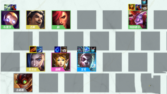 这套8人口有3张可动牌,金克斯、杰斯、蔚,假设你金克斯不来,但抓到2星维克托或卡莎一样能上场C,如果之前已经做好了羊刀正义巨杀这种装备,他两可以完美消化,另外如果你转带了他们,那杰斯和蔚就可以灵活换成塔姆和巨魔补双斗,剑姬和卡莎补双挑