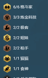 6格斗家、3炼金、2极客、2姐妹、2枪手、1猫猫、1食神