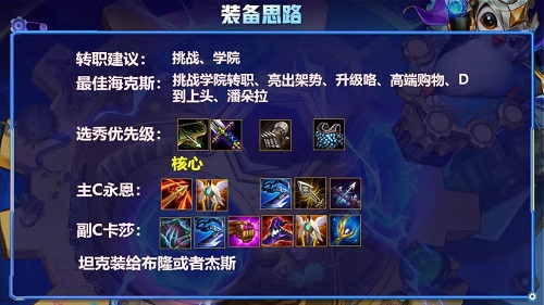 2、有挑战转职可以下卡密尔上杰斯,有学院转职可以给剑姬卡莎,下布隆上猫咪,2星杰斯可以下布隆日女上猫咪,能上9人口有挑战转职2星布隆可以下日女上8挑战。
