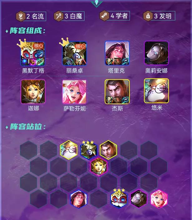 阵容羁绊:2名流 3白魔 4学者 3发明