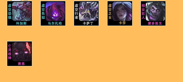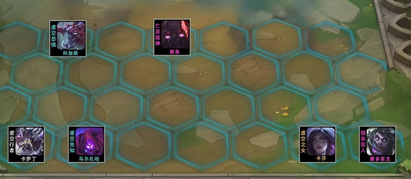 1、阵容由大虫子,马尔扎哈,卡沙丁,卡莎,蒙多,塞恩组成;