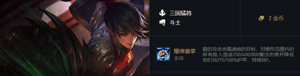 [三国猛将]们拥有额外的生命值和法术强度。他们在登场后每打赢场战斗,就会使这个额外加成提升10%,至多可叠加5次。