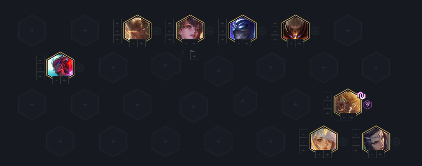 5-1升8成型阵容,后期可以给莫甘娜找复活甲或者给刀妹找偷偷,D狼人三星和刀妹三星,三星狼人必吃。