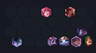 如成型有三星金克丝可以竞争吃鸡,4明昼的攻速配合4射手,金克丝可以快速清场和持续打控制。很怕刺客和夜影,大后期如有机会上9,可以上沙皇加强后排的保护,或者调整站位来应对。