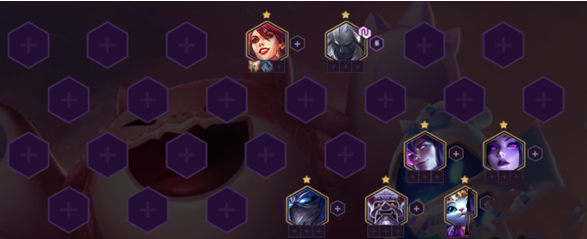 棋子构成:猪妹(瑟庄妮)、剑魔(亚托克斯)、锤石、蛇女(卡西奥佩娅)、慎、基兰、悠米、阿狸