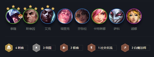 4刺客、3帝国、2极客、1社交名流、2白魔法师